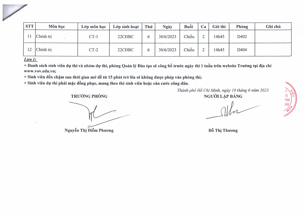 LỊCH THI KẾT THÚC MÔN, HỌC KỲ II, NH 2022 - 2023 (ĐỢT 2)