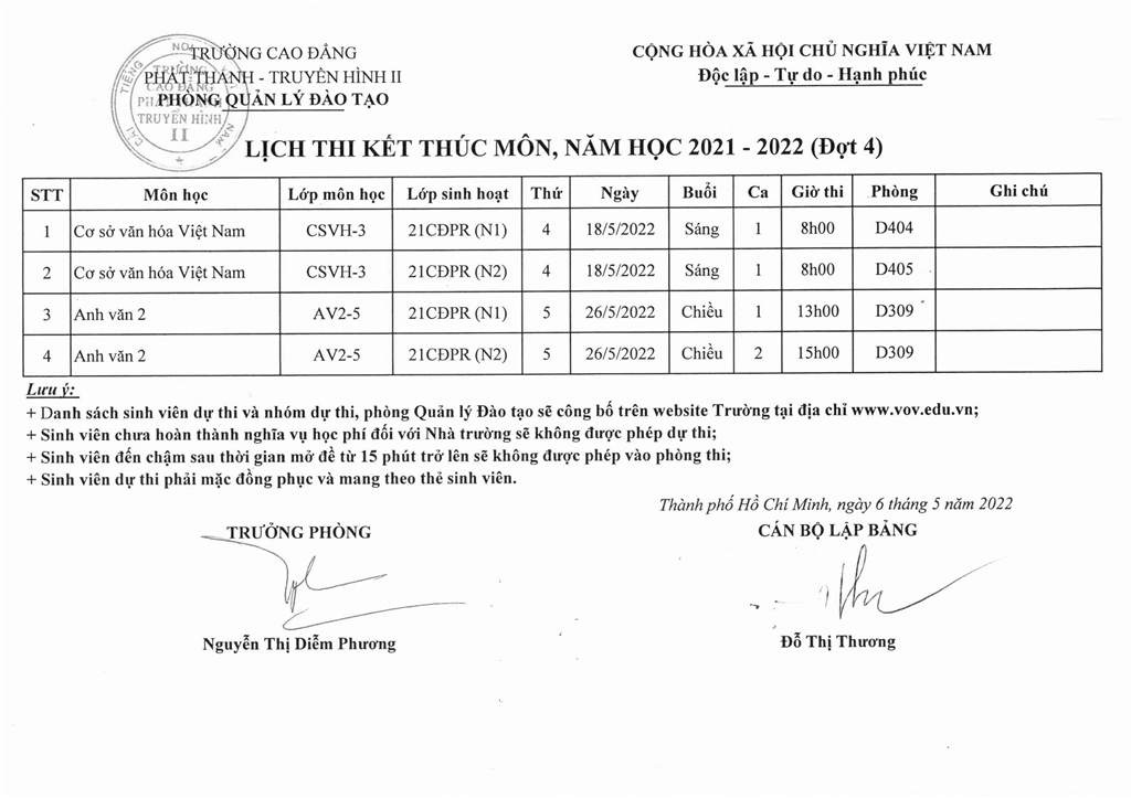 Danh sách dự thi kết thúc môn học, năm học 2021 - 2022 (Đợt 4)