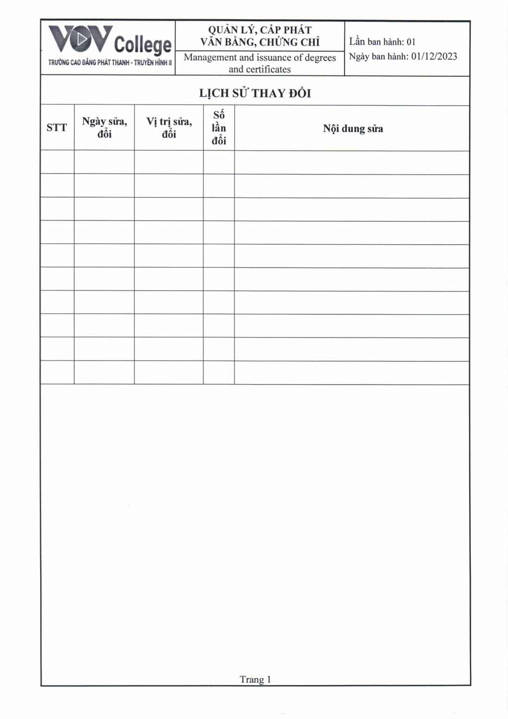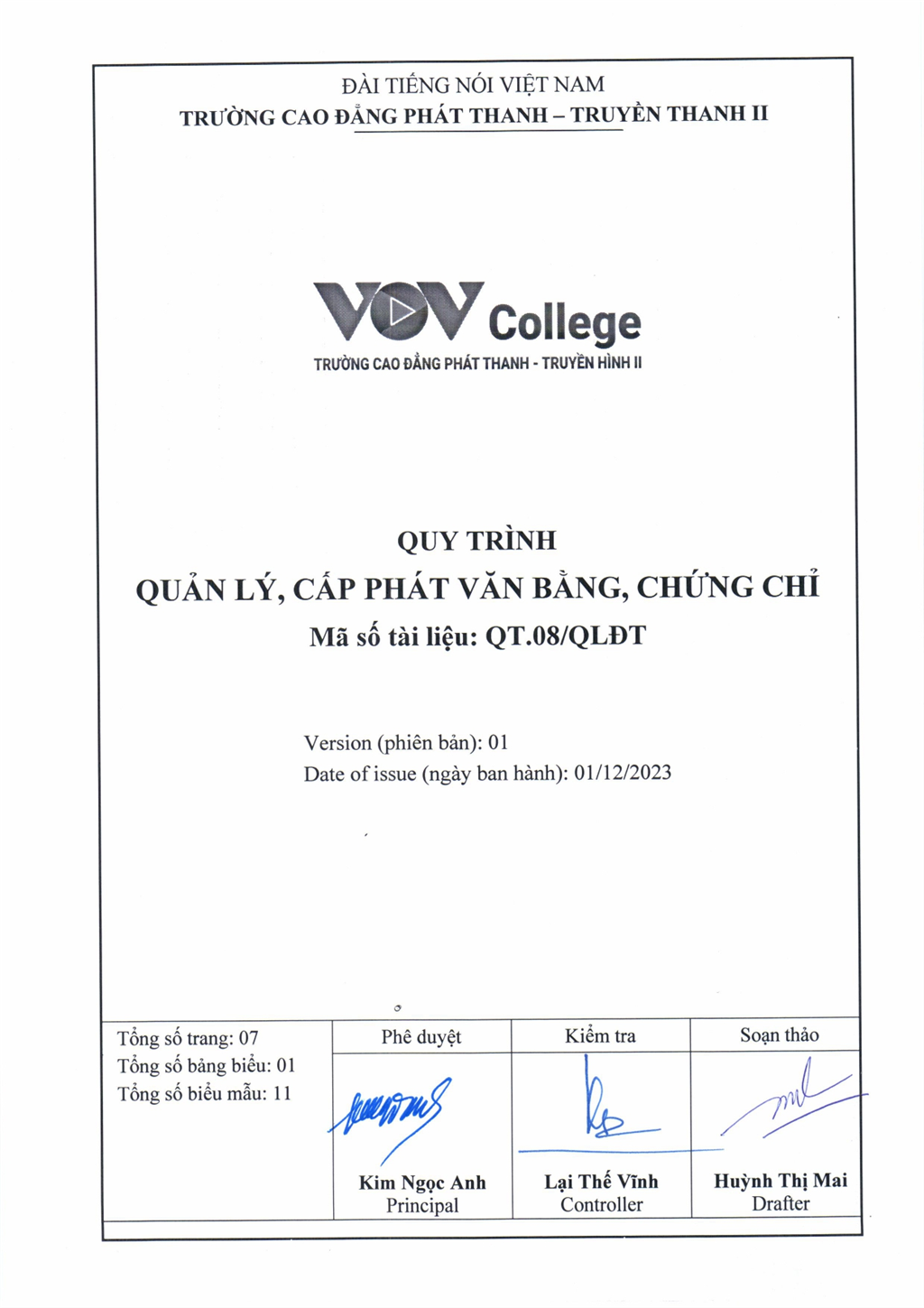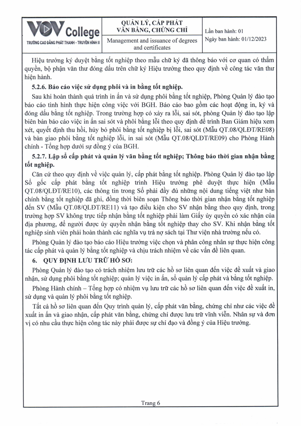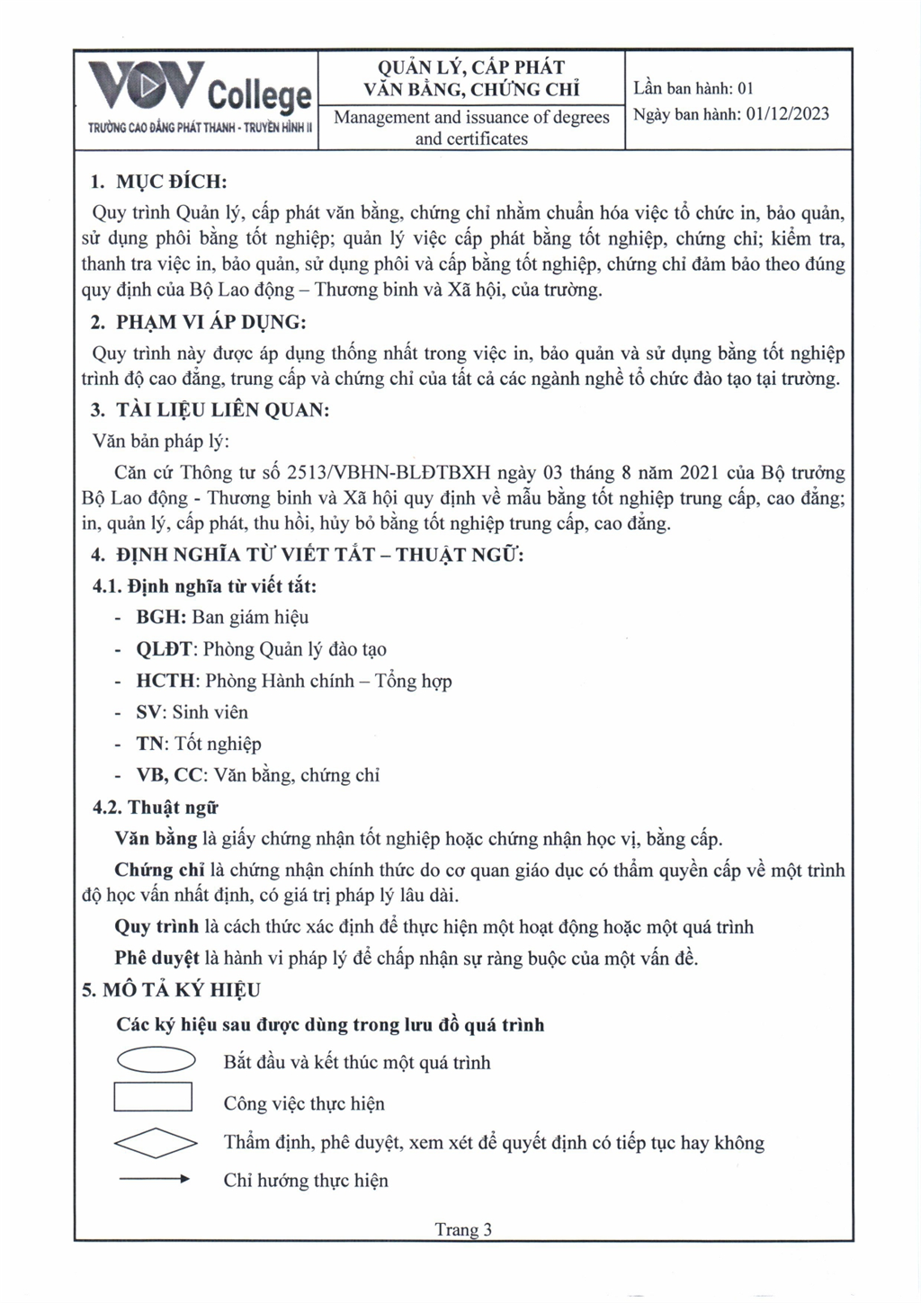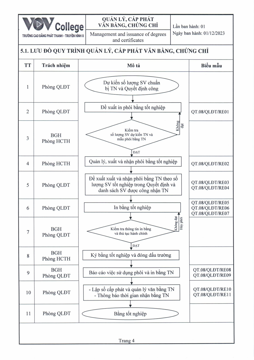 Quy trình quản lý, cấp phát văn bằng, chứng chỉ (Tải về)