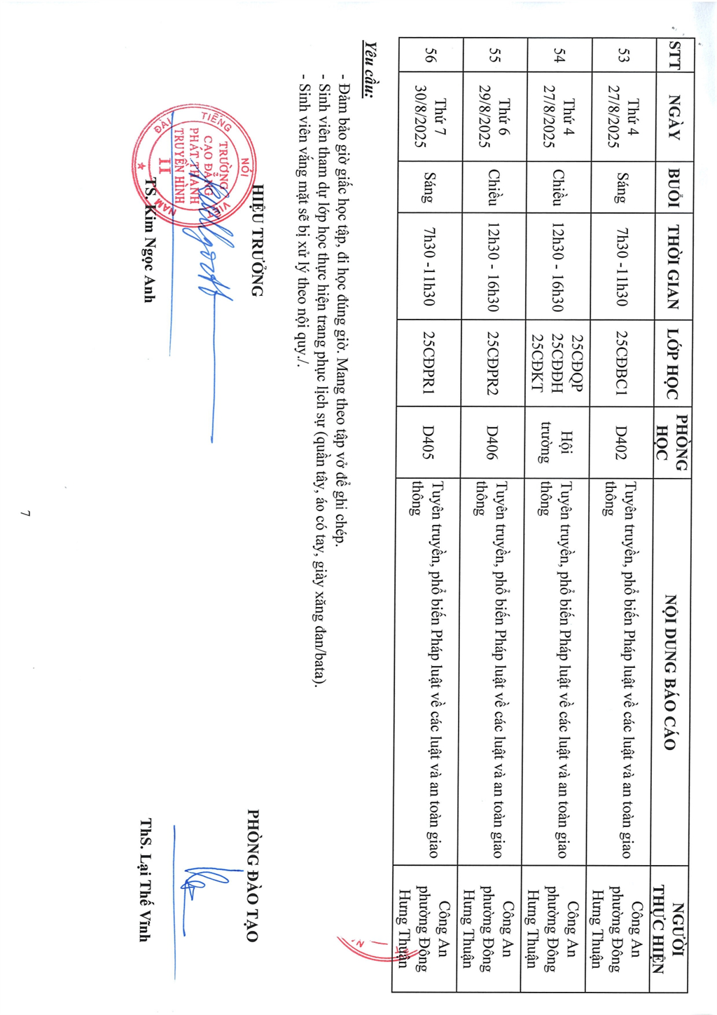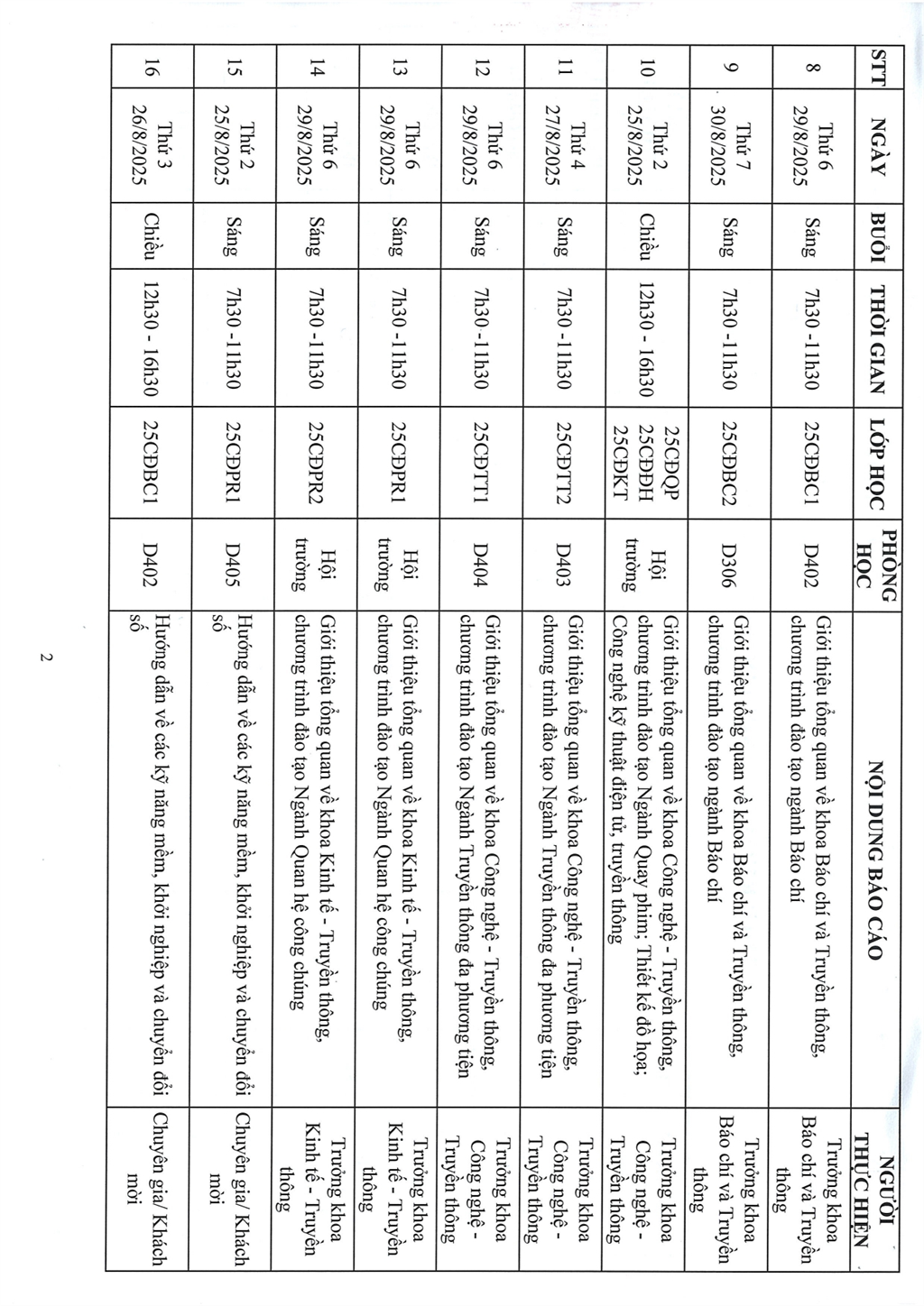 Thời khóa biểu học kỳ 1, năm học 2025-2026 (cập nhật ngày 30/08/2025)
