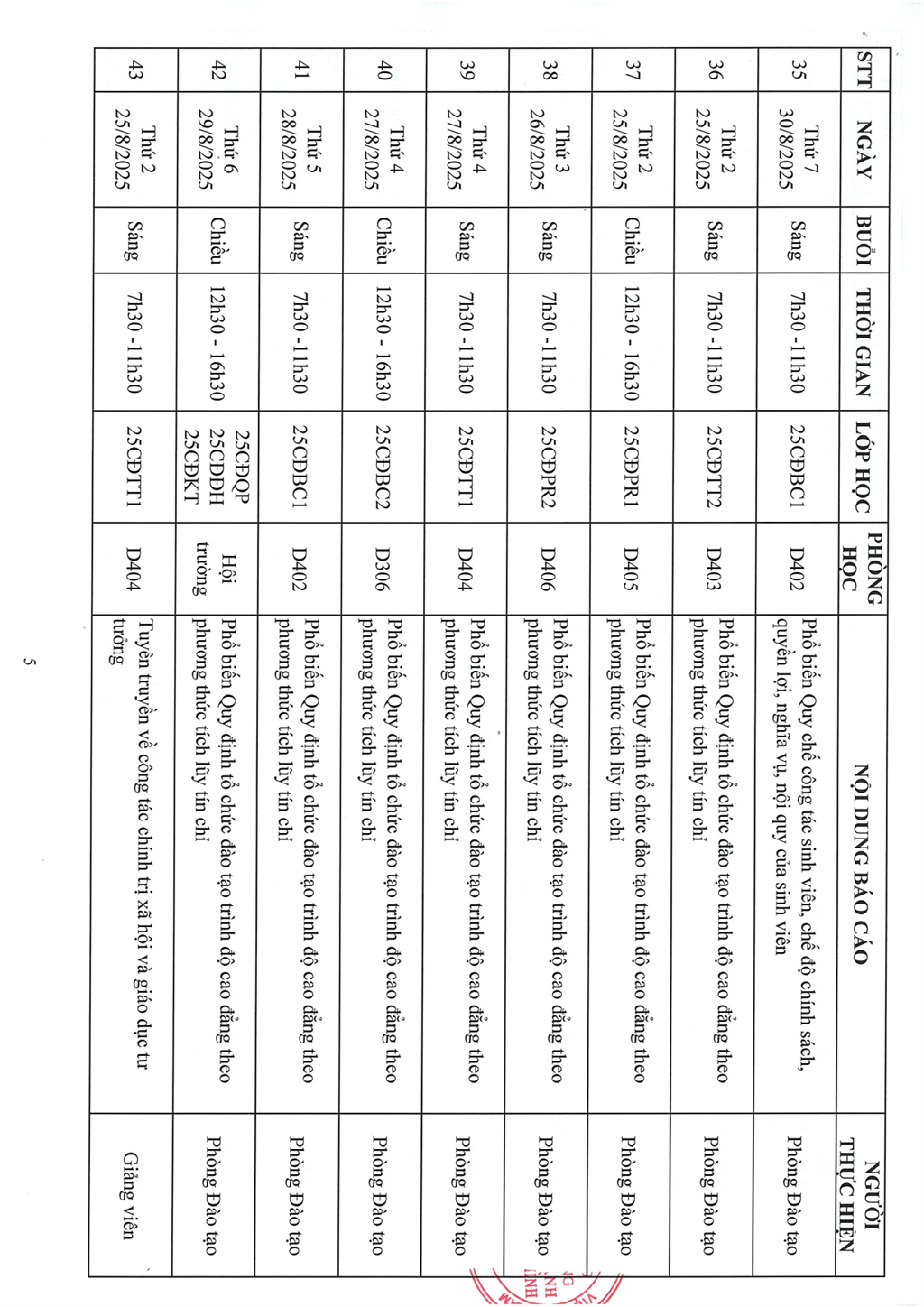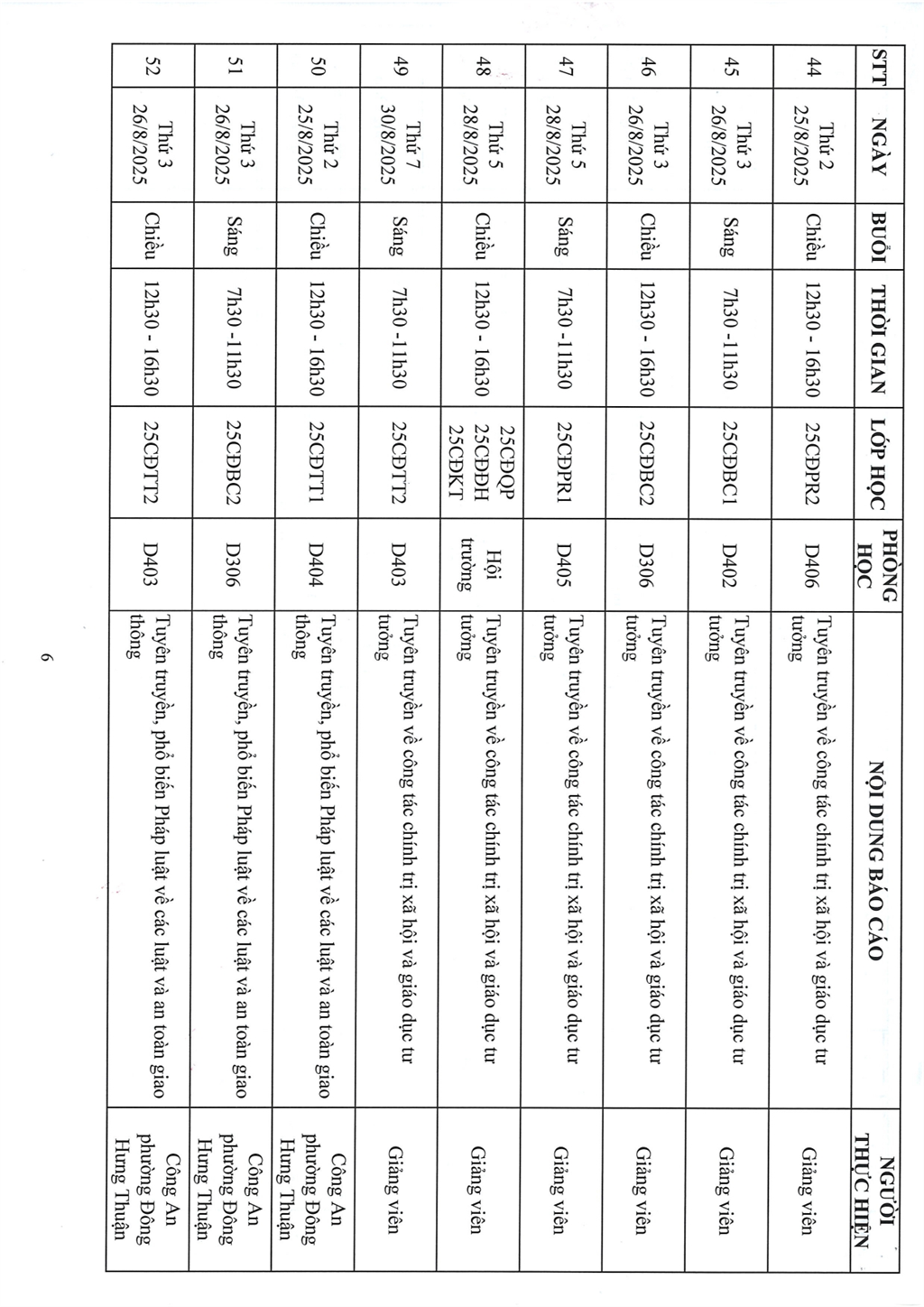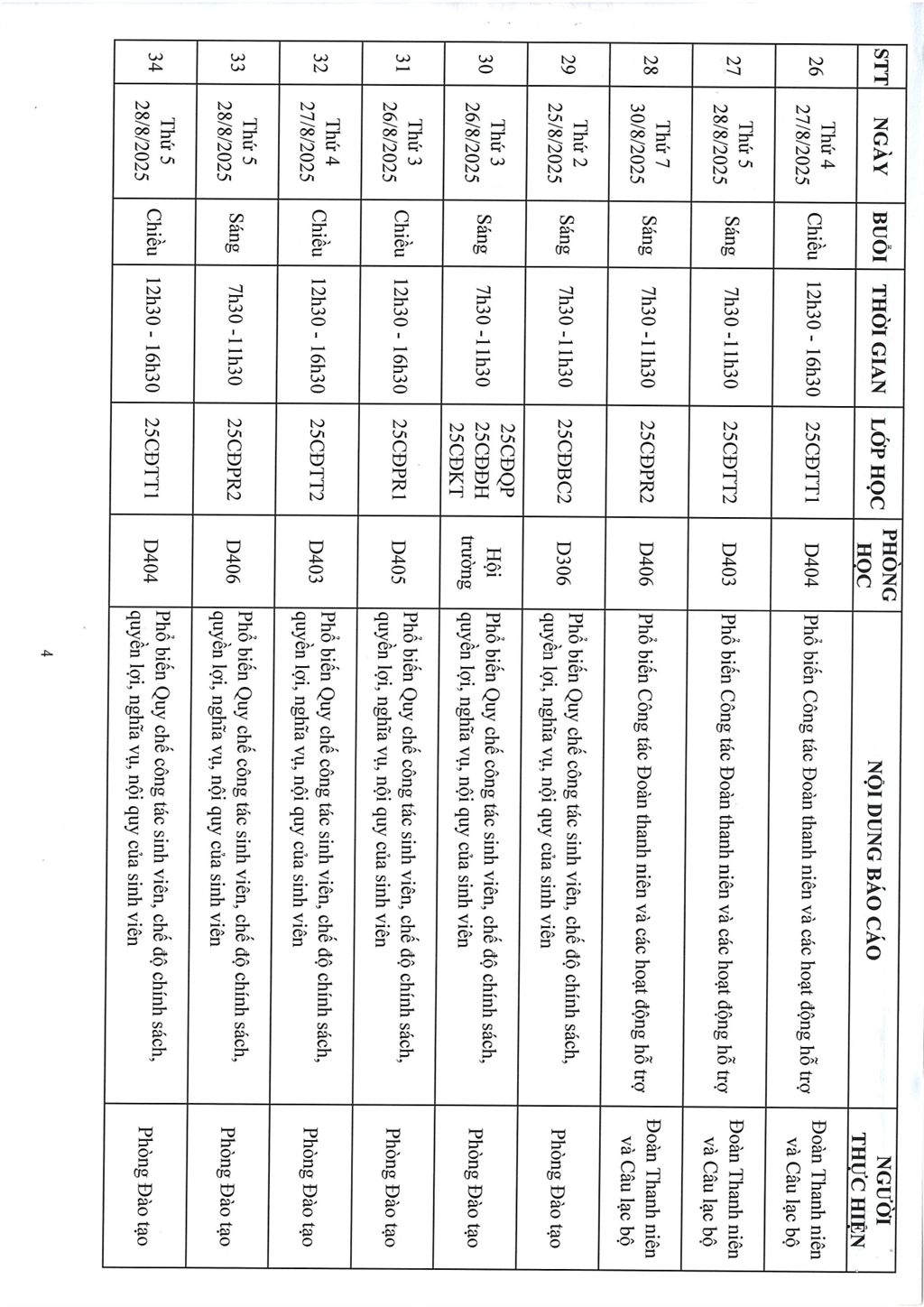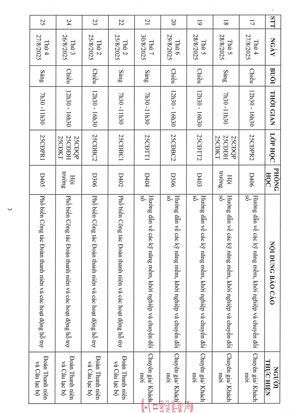 Thời khóa biểu sinh hoạt chính trị khóa 2025