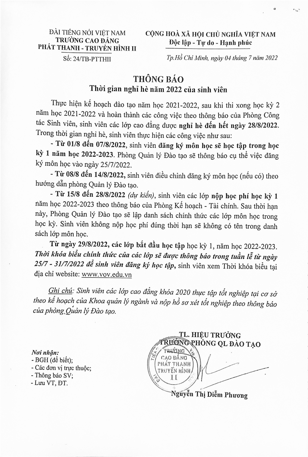 Thông báo thời gian nghỉ hè năm 2022 của sinh viên