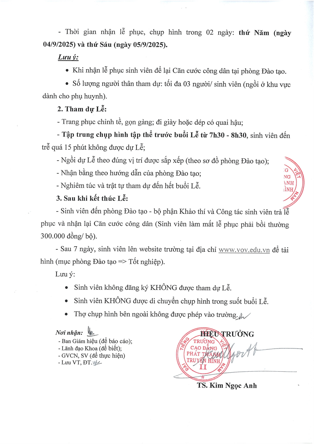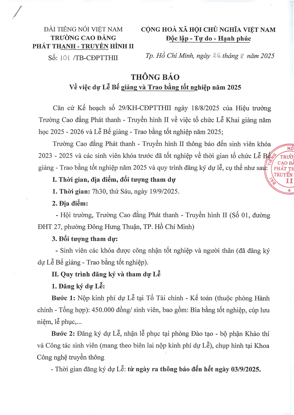 Thông báo về việc dự Lễ bế giảng và trao bằng tốt nghiệp năm 2025