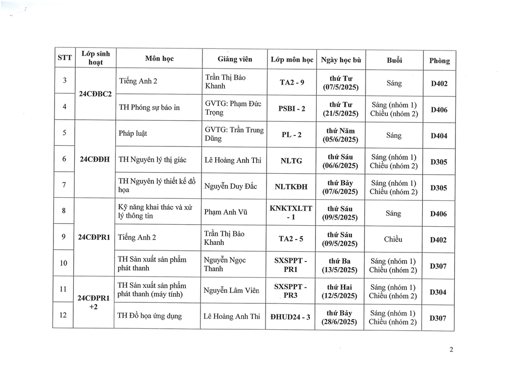 Thời khóa biểu