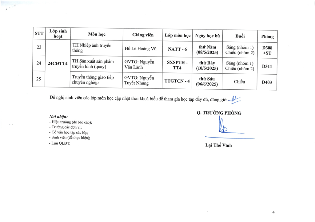 Thông báo về việc mở lớp bổ sung môn học học kỳ 1, năm học 2025-2026