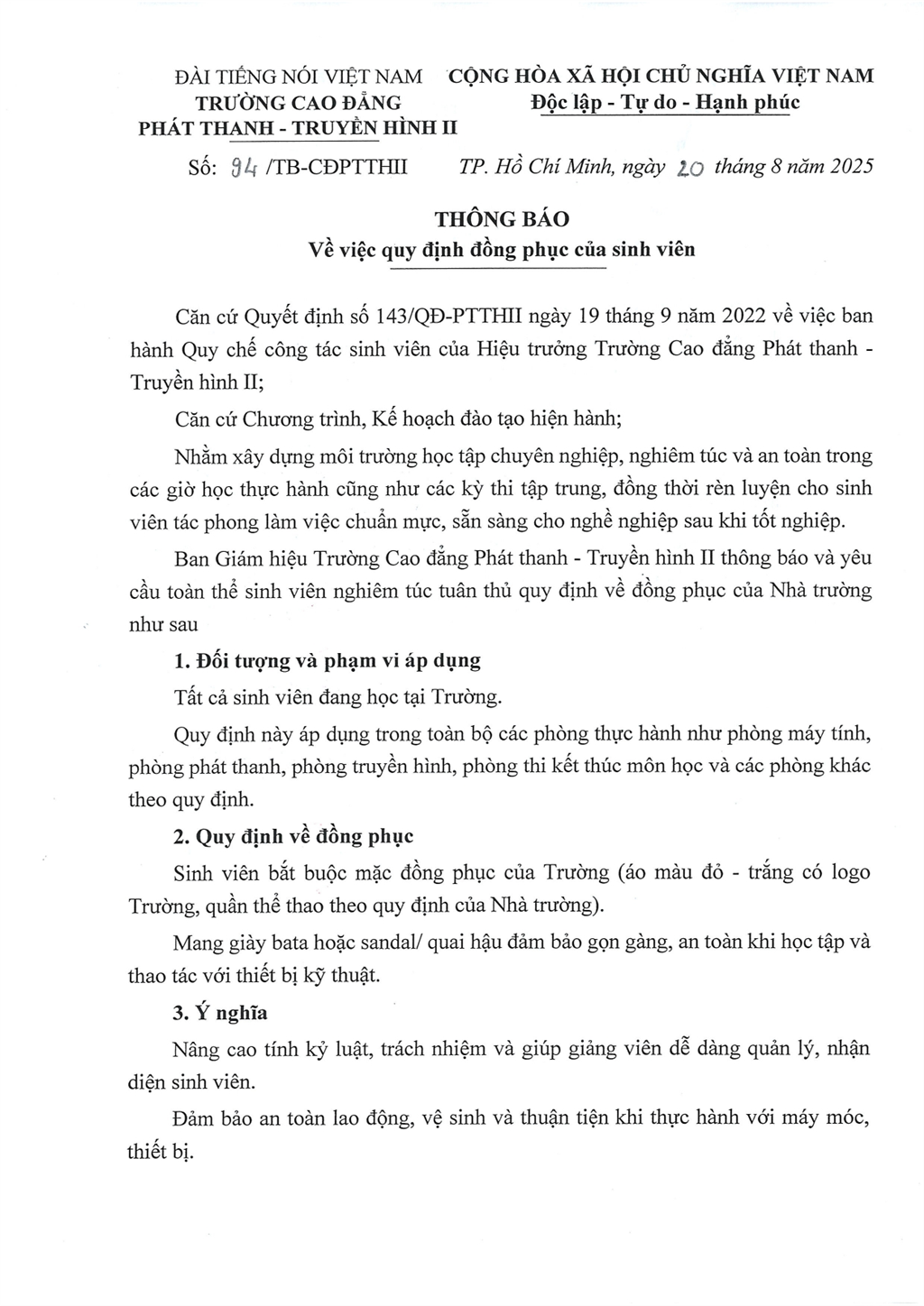 Thông báo về việc xét điểm rèn luyện học kỳ II, năm học 2024 - 2025 (đối với khóa 2024)
