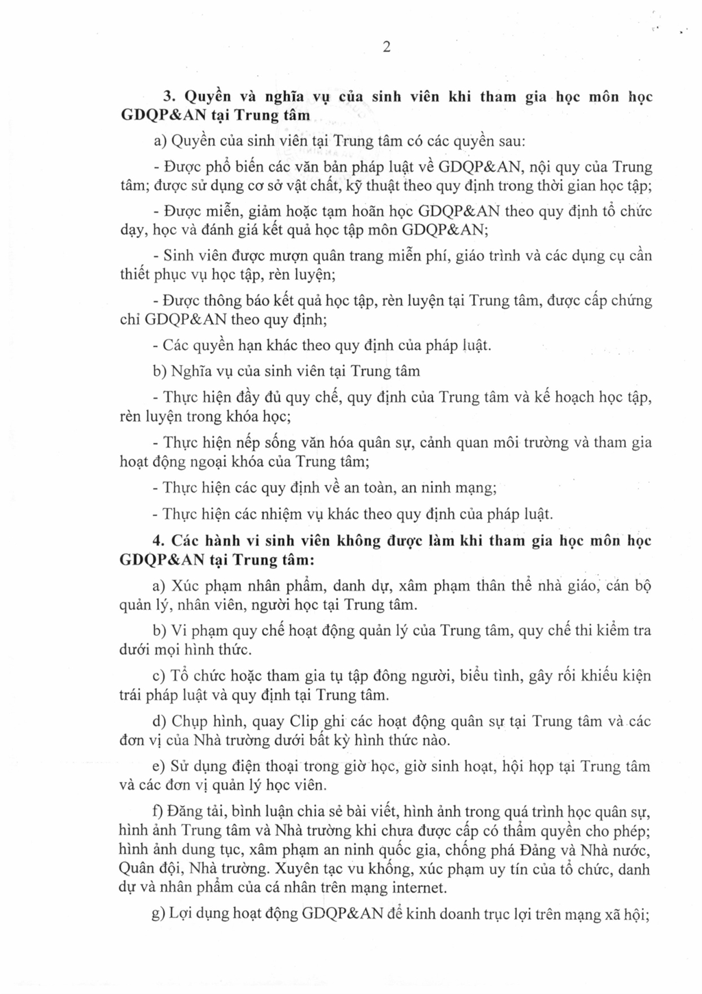 Thông báo về việc tham gia học tập Giáo dục quốc phòng - An ninh năm 2023