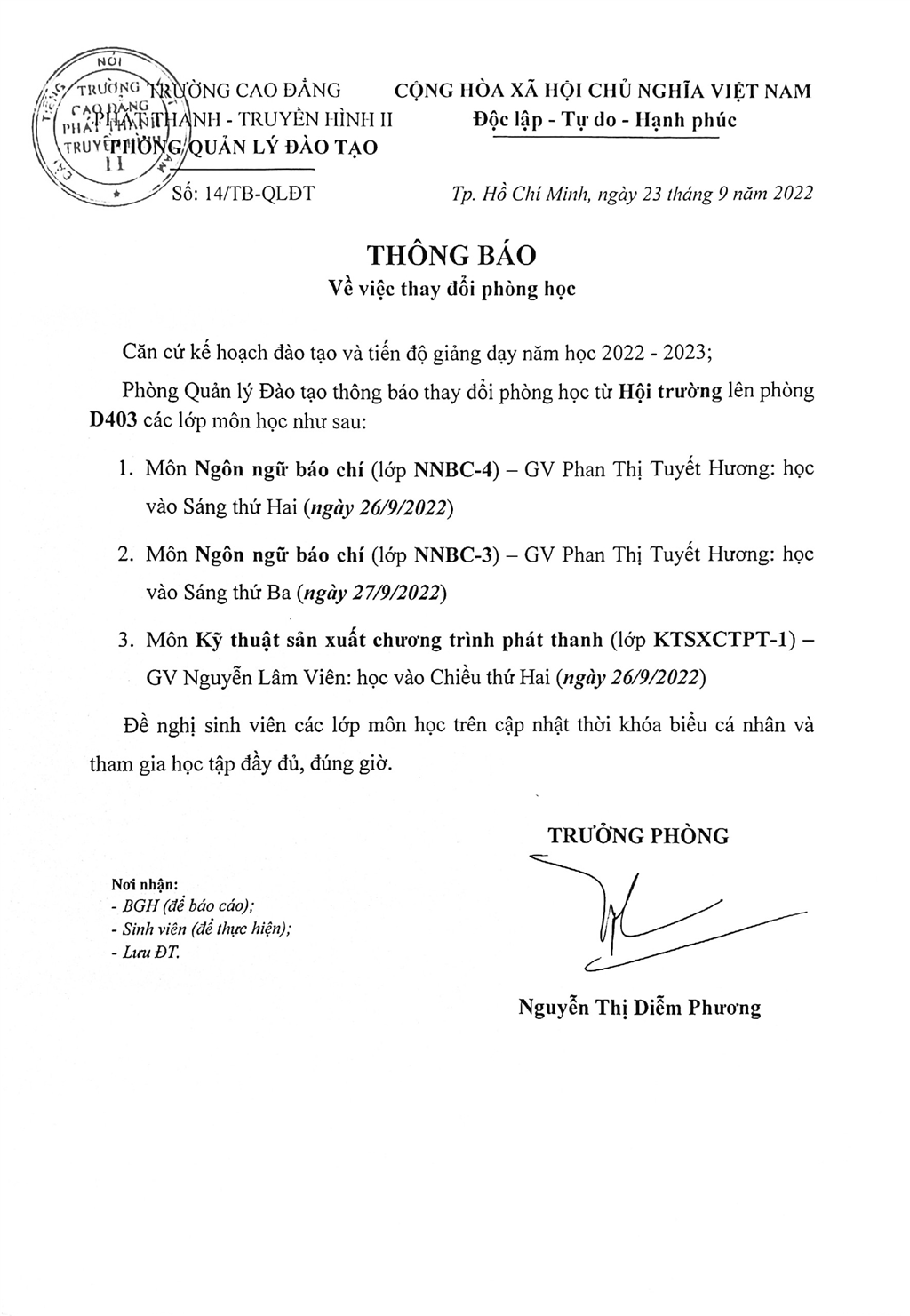 Thông báo về việc mở lớp bổ sung môn học học kỳ 1, năm học 2025-2026