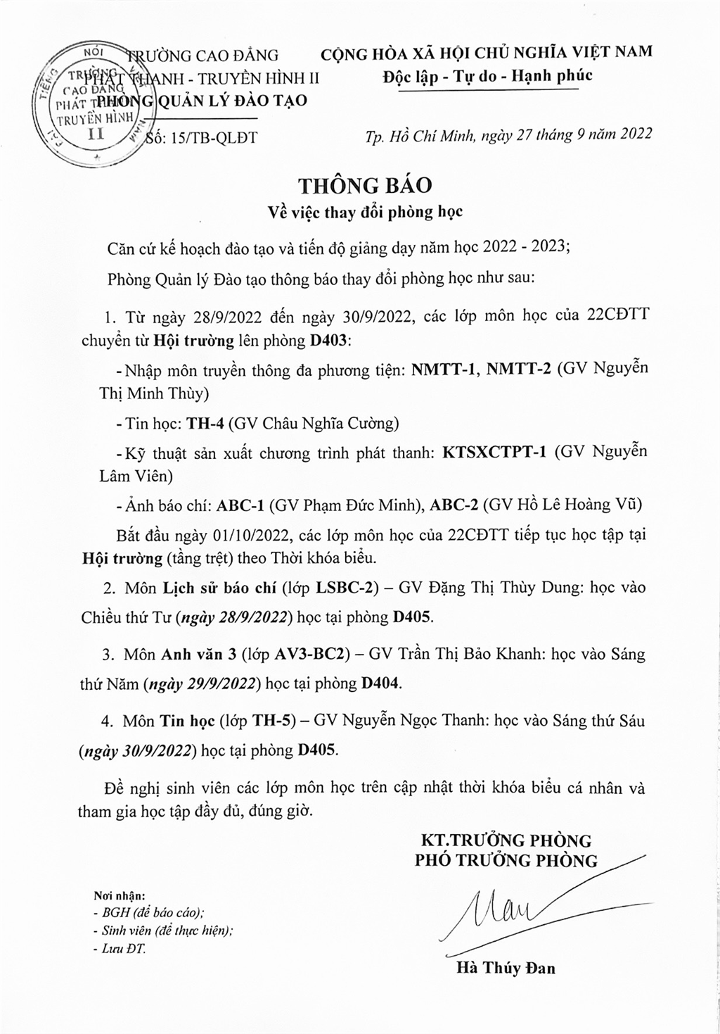 Thông báo về việc mở lớp bổ sung môn học học kỳ 1, năm học 2025-2026