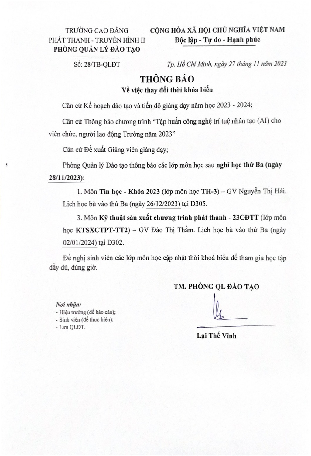 Thông báo về việc mở lớp bổ sung môn học học kỳ 1, năm học 2025-2026