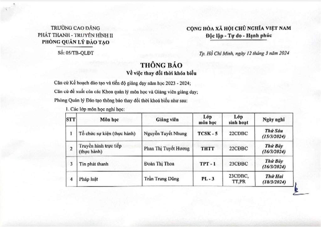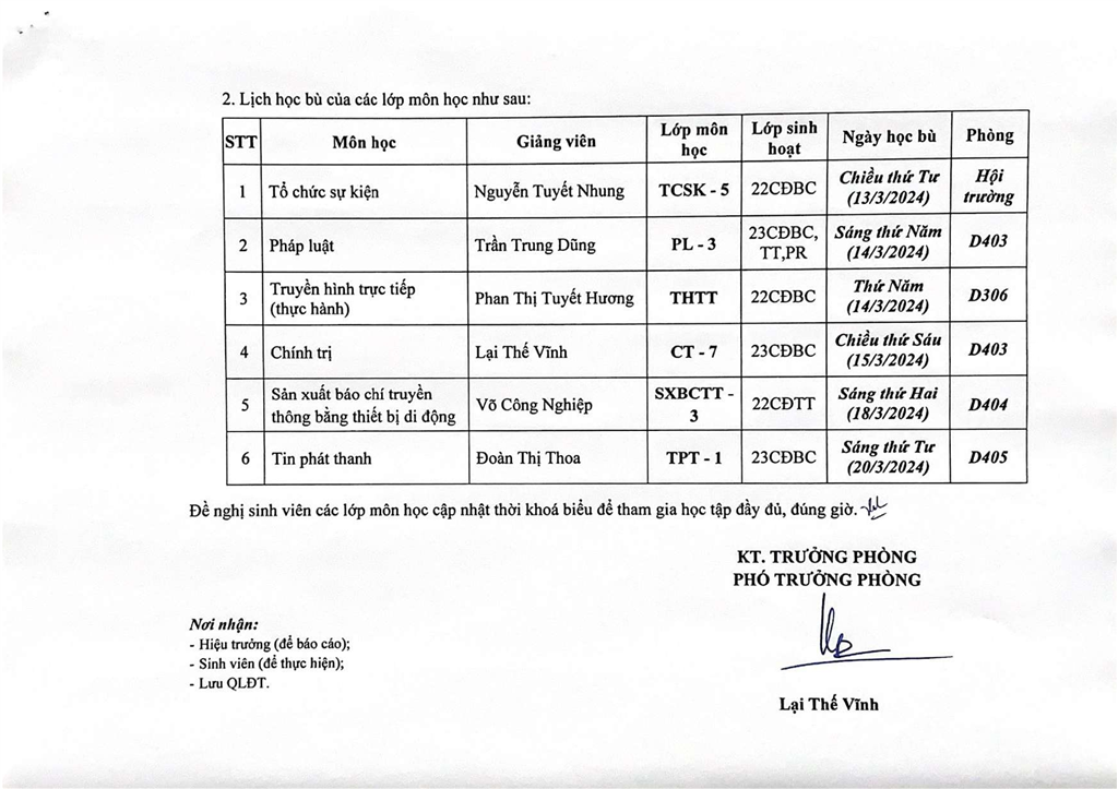 Thông báo về việc mở lớp bổ sung môn học học kỳ 1, năm học 2025-2026