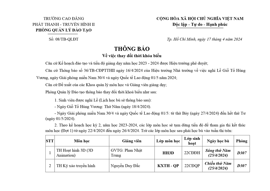 Thông báo về việc xét điểm rèn luyện học kỳ II, năm học 2024 - 2025 (đối với khóa 2024)