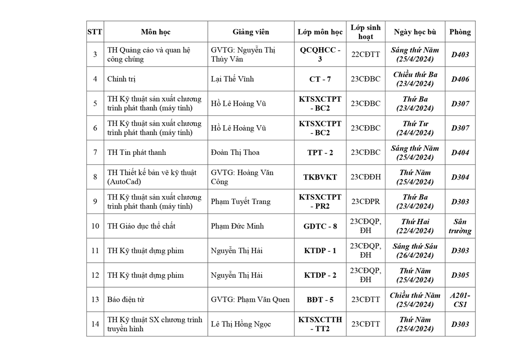 Thông báo về việc mở lớp bổ sung môn học học kỳ 1, năm học 2025-2026