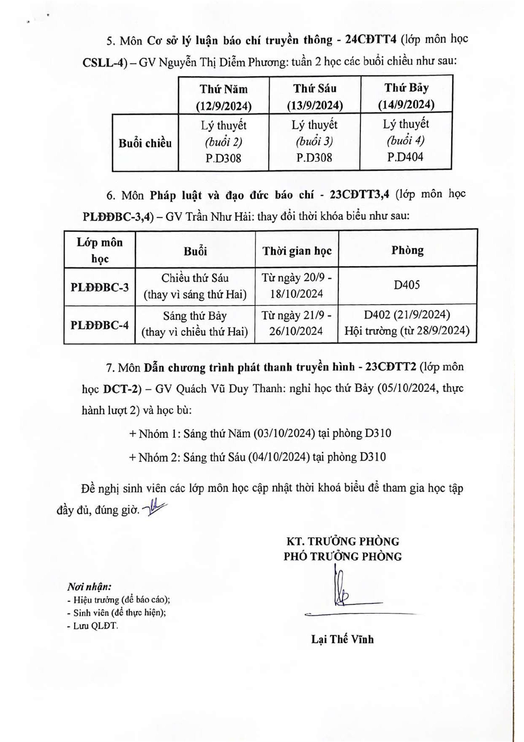 Thông báo về việc mở lớp bổ sung môn học học kỳ 1, năm học 2025-2026