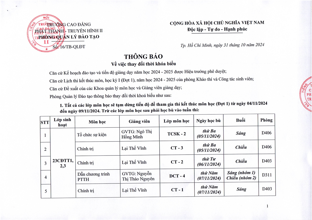 Thông báo về việc mở lớp bổ sung môn học học kỳ 1, năm học 2025-2026